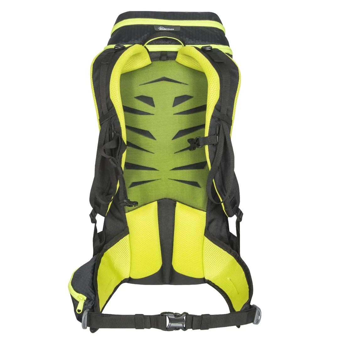 这款背包采用的是运动型背负系统,背板是由内层带有通风槽的热压成型的高密度发泡棉和外层结实透气的弹性面料组成,不仅有缓震支撑的效果,而且还舒适排汗。
