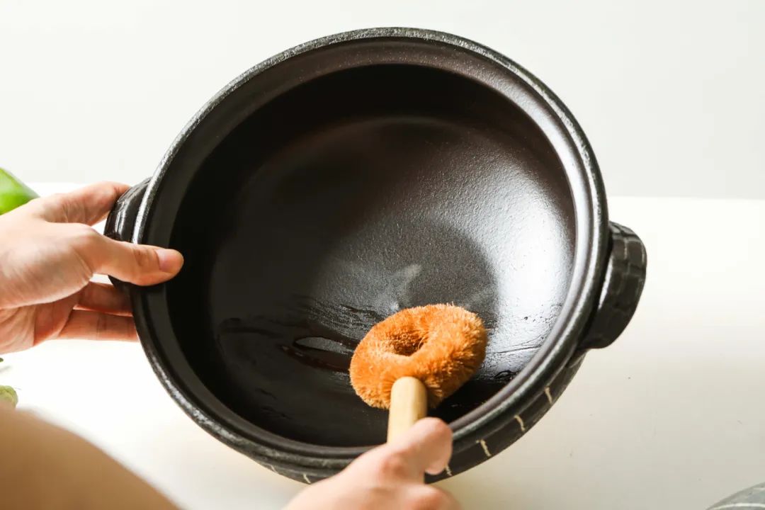 4、清洗砂锅时,请勿用钢丝球等锐利清洁工具,如遇粘锅,可用热水浸泡再用百洁布配少许洗洁精清洗即可。