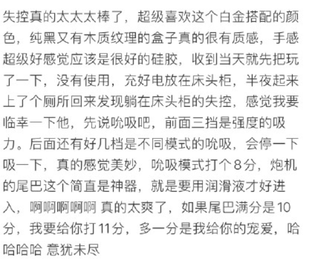 最近特别流行吮吸+震动的小玩具,听上去已经非常多功能了,谁知道现在这厂商越来越厉害,有这两个功能还不够,这不,今天要给大家测评的是Cachito诱桃品牌的“失控·炮机”玩具。