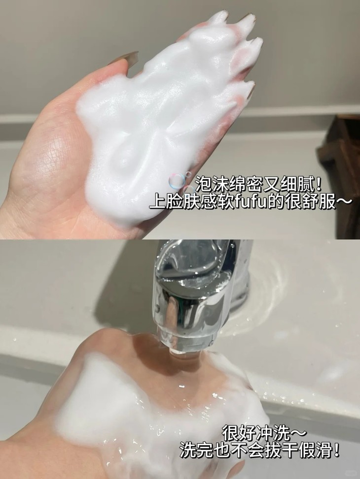洗完脸完全不拔干不假滑,摸起来软fufu的~