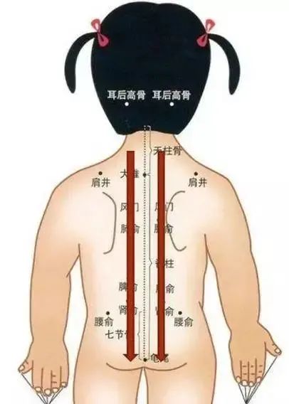 另外,脊柱两旁是足太阳膀胱经,各脏腑背俞穴均在背部膀胱经上,这些经穴是运行气血、联络脏腑的通路,刺激这些穴位可起到振奋阳气、调和气血,恢复脏腑功能的作用。