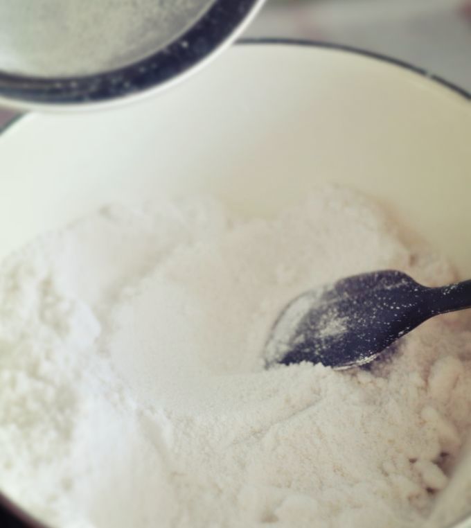2、将筛好的粉与白糖混合均匀;