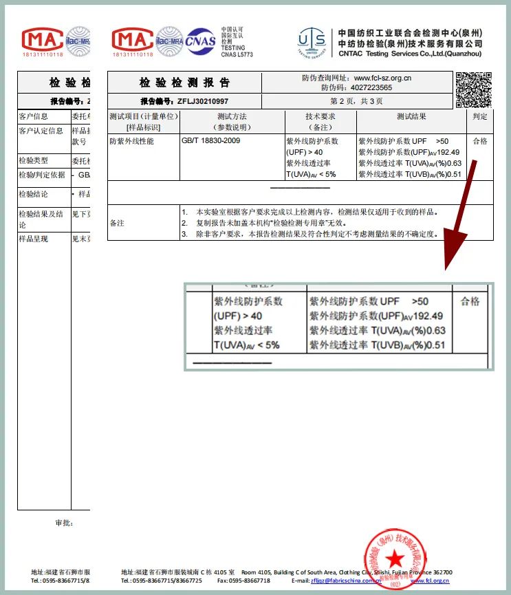 根据国家定义UPF大于50,UVA的透光率小于5%的才能称之为“防紫外线产品”。