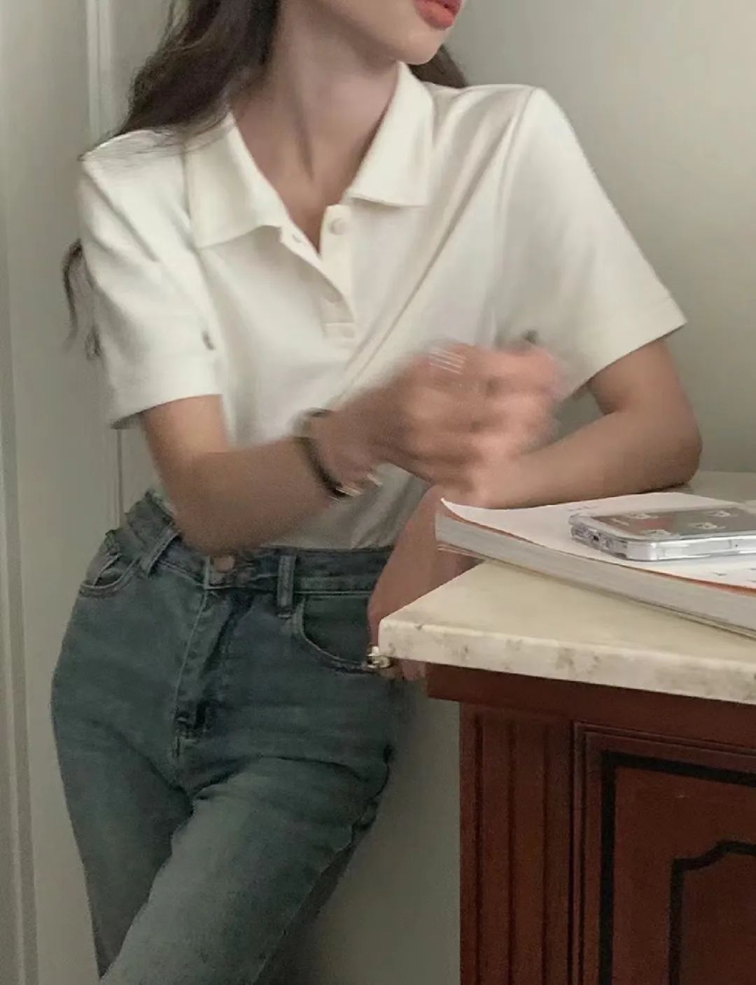 polo领修饰颈脖显得脸巨小,修身版型凸显腰身又没有紧勒感,上身一整个纸片人既视感!