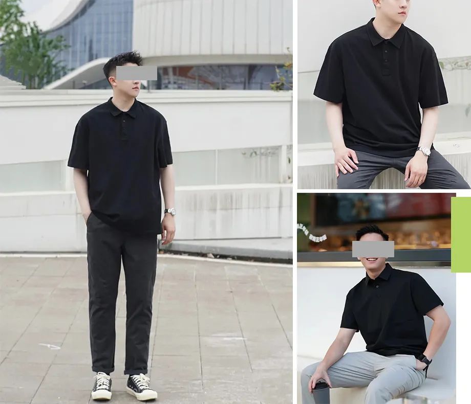 一件POLO衫想要上身立显瘦的,面料和版型这方面就特别重要。