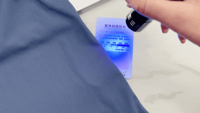 看,我们拿紫外线灯直接照射都能完全挡住!