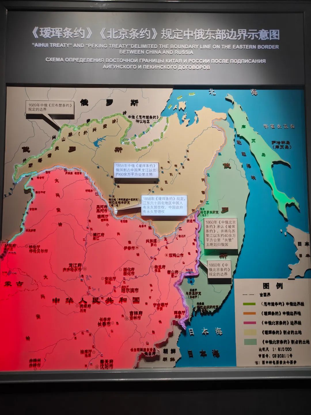 以上,仅是东北最近 20 年的重大变化。再往前追溯 200 年,东北历史更沉重。从清朝开始,俄国不断入侵中国远东地区,清政府被迫签订了《瑷珲条约》和《北京条约》,分别将黑龙江以北 60 万平方公里土地和乌苏里江以东 40 万平方公里土地割让给了俄国。加起来超过了一百万平方公里。而黑龙江和乌苏里江两条大河,本来是我们的内河,现在变成了界河。