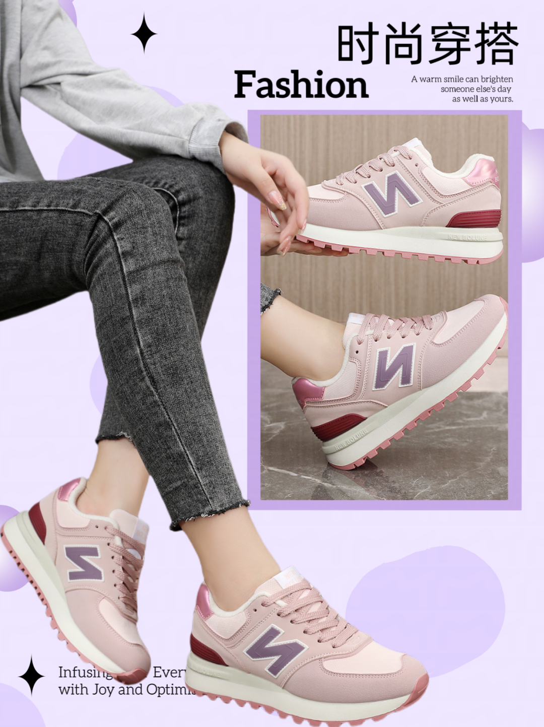 整个鞋子既有休闲时尚的外观,又有运动鞋的功能,可走可跑可跳,不磨脚不挤脚不掉跟。