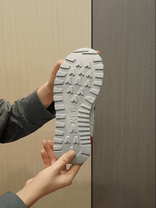 鞋底采用生物基混合EVA物理发泡 + 环保橡胶外底。