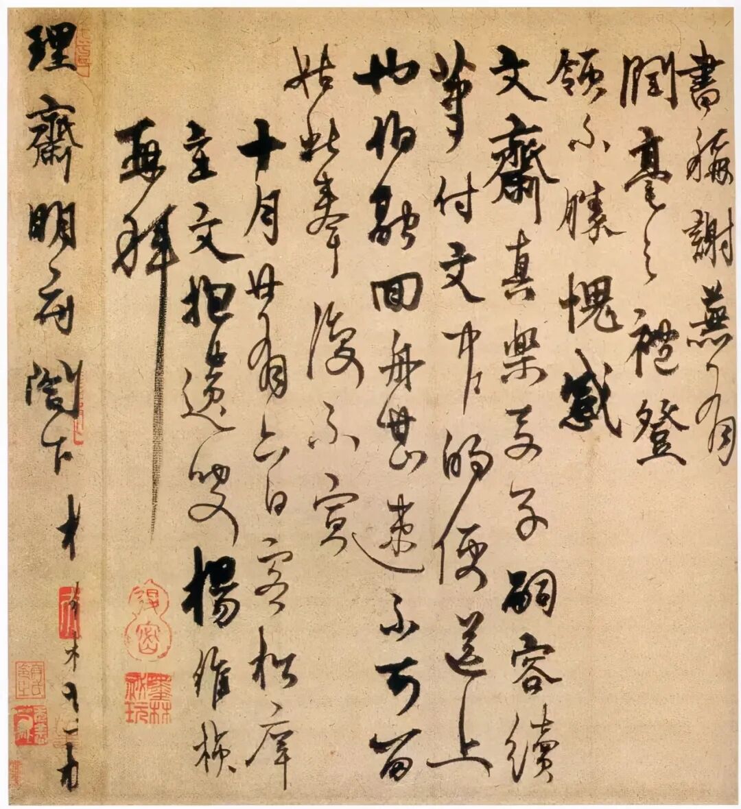 他患过精神分裂症,因杀妻入狱六年,一生坎坷,晚景凄凉。受王阳明心学的影响,主张”始于学,终于天成“,”天成者,非成于天也,出乎己而不由乎人也“。由于独特的艺术价值理念,他在诗文、书画、戏曲等方面取得了惊人成就。徐渭的书法气势磅礴,重神不重形,既是个性解放思想的宣泄,又是忧郁苦闷感情的抒发。