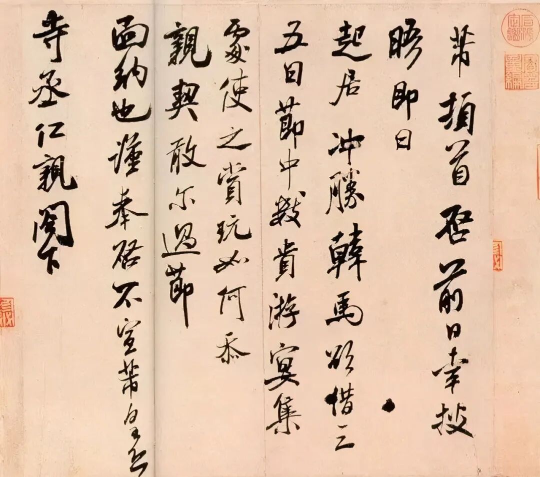 米芾为人狂放,人称米颠。他在书法上致力于取百家之长,终于走出一条有个人面目的书法道路。他的行书用笔利落爽劲,结体欹正相间,达到了出神入化的境地。后人学习米字如过江之鲫,但都没有达到苏轼评论米字”风樯阵马,沉着痛快“的高度。真可谓学得了形似,学不得神似。