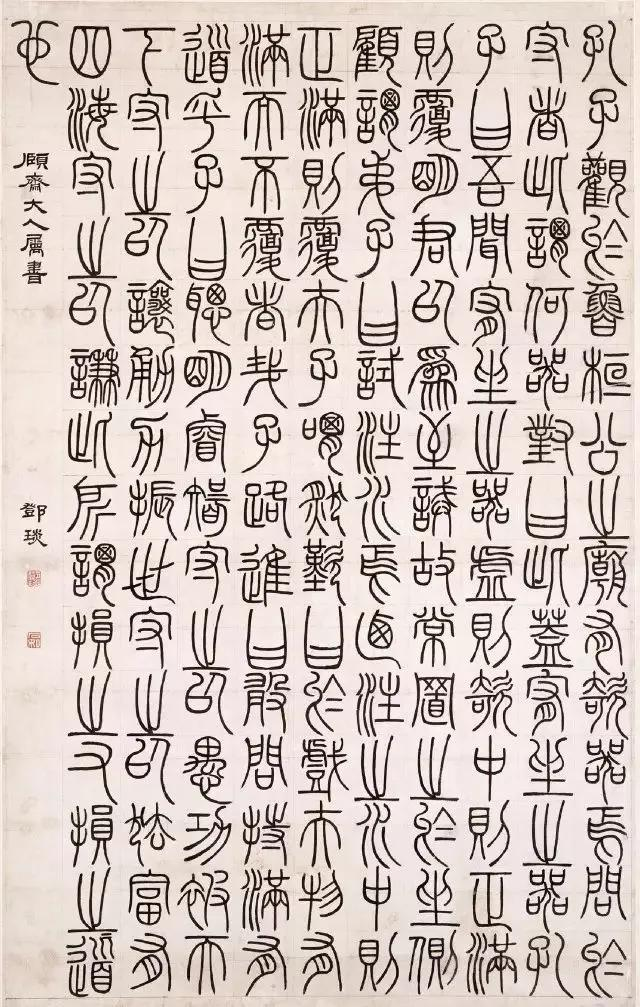 邓石如是真正的布衣书法家,他的狂怪表现在,在京城不买权贵翁方纲的帐。作为清代篆隶书法的大师级人物,邓石如为碑派书法的发展做出了不可磨灭的贡献。艺高人胆大,他的狂怪无可厚非。