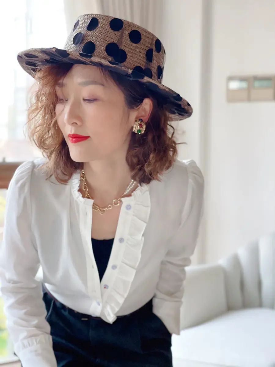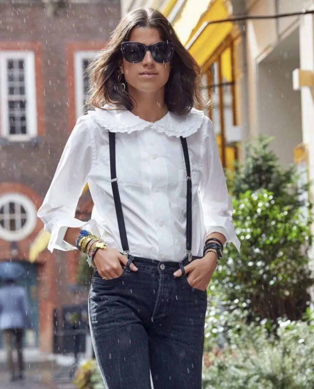 层叠的翻领让平淡无奇的白衬衫有了时尚的态度。