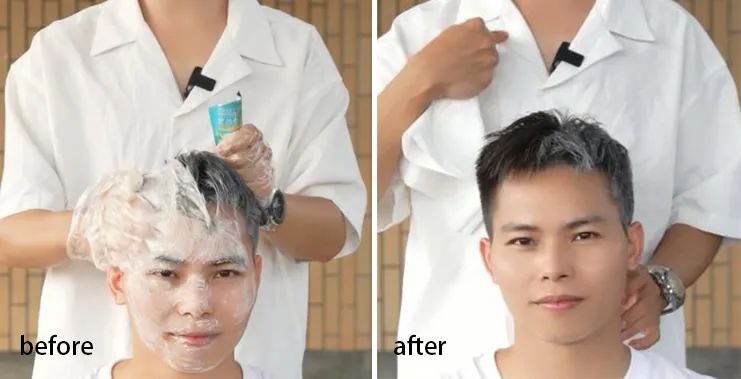 办公室小哥亲测,像他这样的短发10分钟白发变黑发,效果贼拉强!