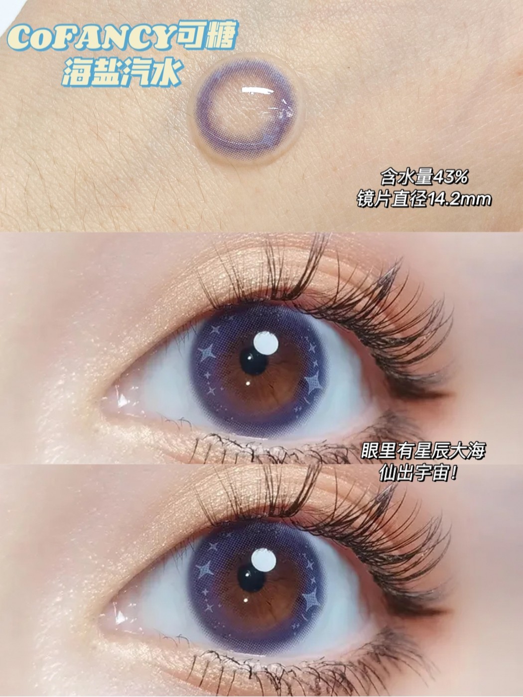 一款入门级轻混血美瞳,蓝紫色渐变梦幻到犯规!素颜化妆随便戴都好看,简直是仙出宇宙的少女眼!
