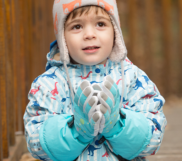 腕部可调节收紧设计,一只手就能轻松操作,收紧之后,避免灌风更加保暖。南方的孩子用来御寒防风完全够,北方的孩子保暖防冻,尽情玩雪也不怕,绝对是冬天必备装备!再也不怕小手冻伤。