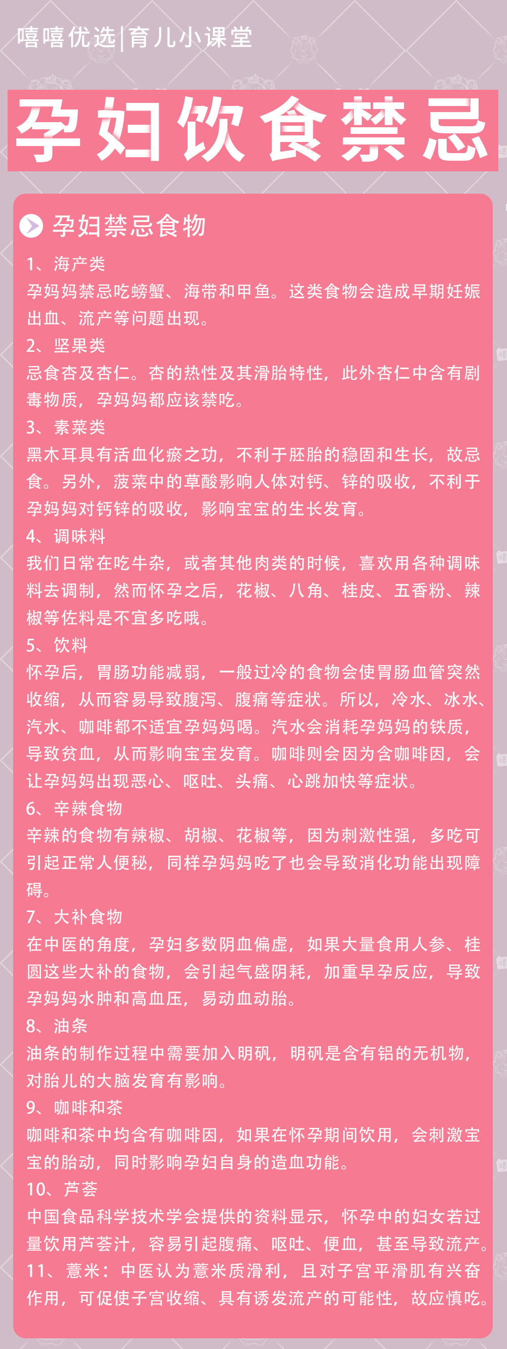 孕期饮食应该是由多样化的食物组成的营养均衡的膳食。《中国孕期妇女平衡膳食宝塔》推荐孕妇每天应该摄入一定量的水、谷薯类、鱼、禽、蛋、瘦肉、奶类、蔬菜类、水果类、大豆/坚果、加碘盐和油,这些食物应该每天“花样式”出现在准妈的餐桌上,而不是由某一类食物唱“独角戏”哦。