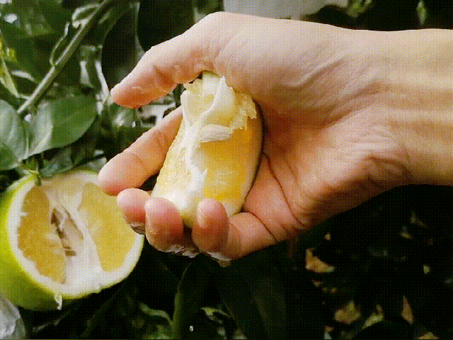 随手一捏,汁水就像瀑布一样喷涌而出~太适合榨汁了,市面上可是很少能喝到鲜榨的柚子汁的!