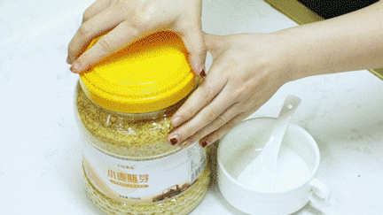 小麦胚芽开盖就会闻到浓郁的麦芽香气,用勺子挖2勺,更能感受到它的细腻