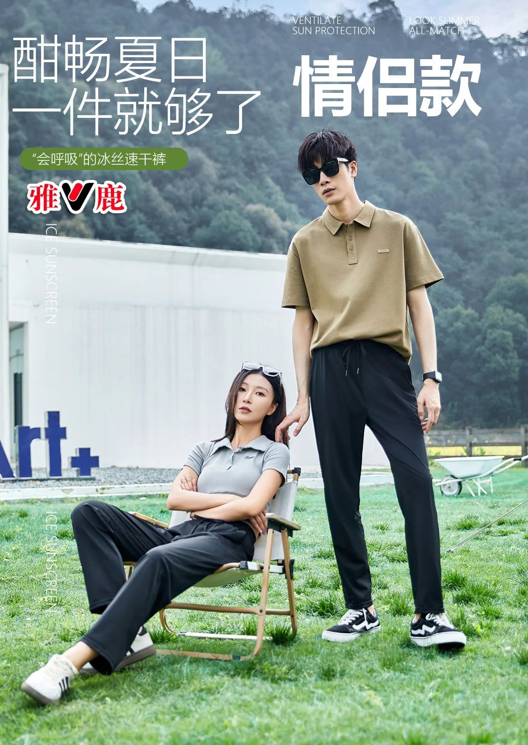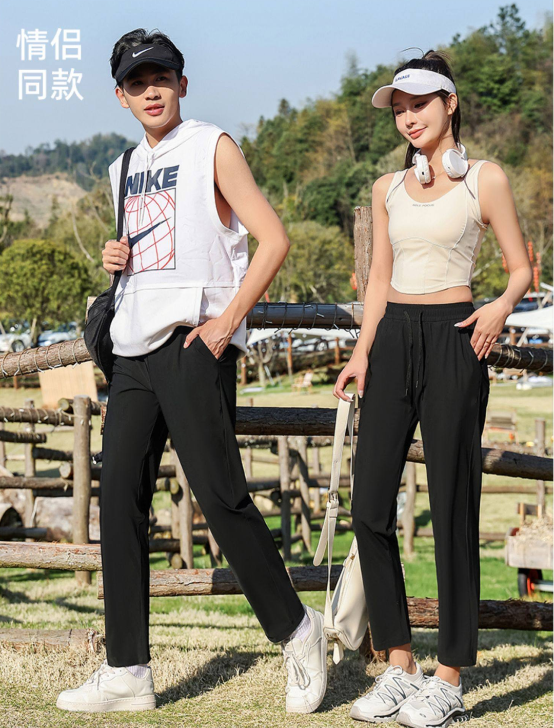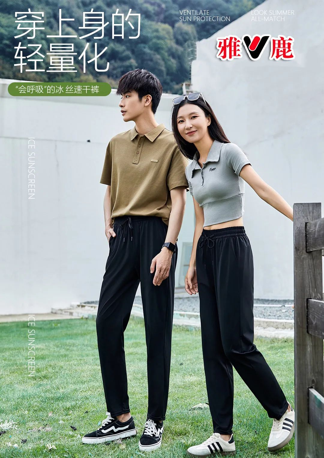 雅鹿裸感冰丝锦纶情侣款速干裤