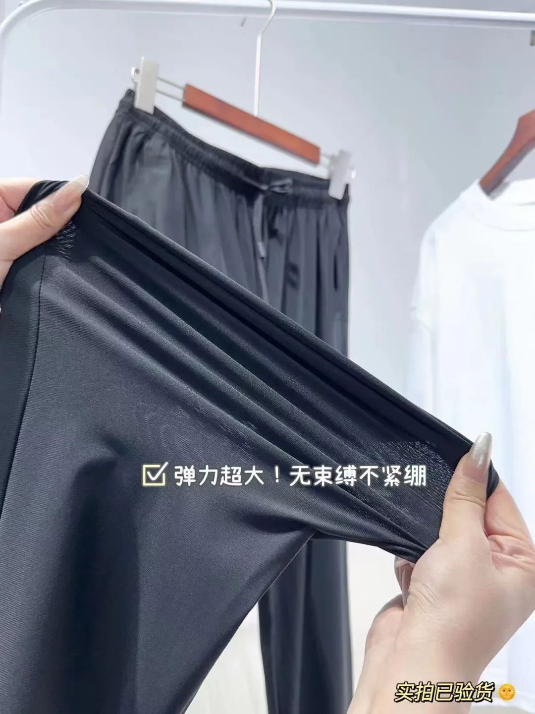 双腿就像置身空调屋一样,轻薄透气,还带着丝丝的冰爽感。