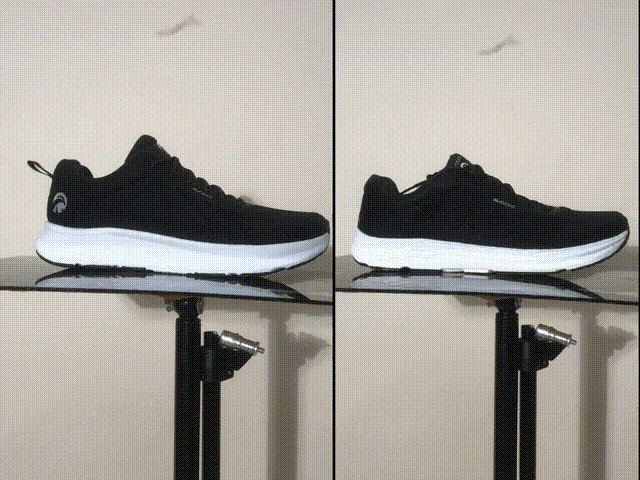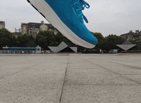 再看和别的运动鞋弹性对比,翱戈的鞋子能弹飞空中,别的却啪叽就掉下来了,回弹几乎没有。