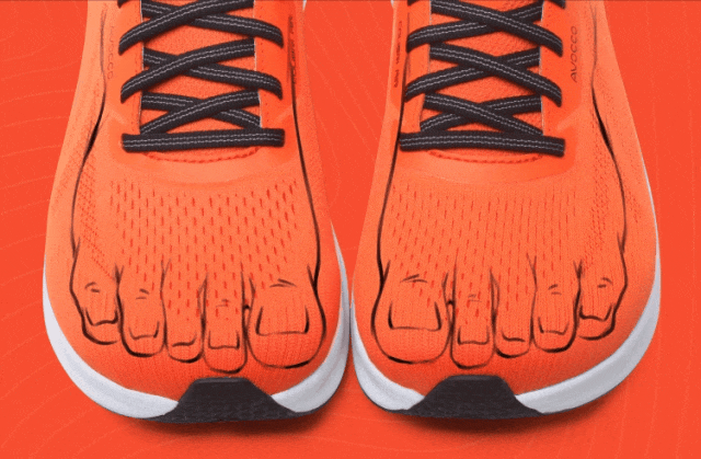【宽掌设计】的好处显而易见:整双鞋子前掌宽松,每一步,脚趾都伸展自如。