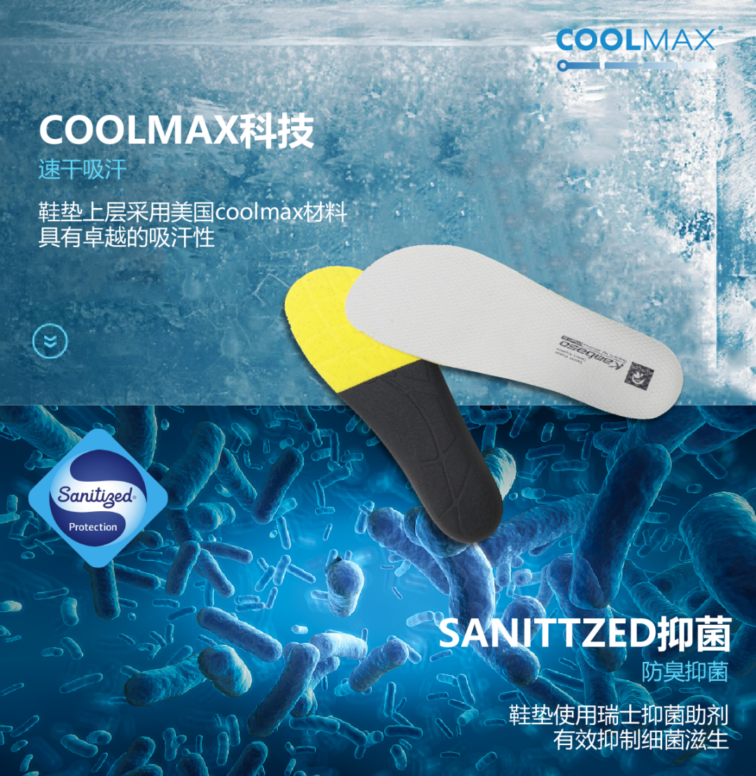 跑步汗臭汗湿在所难免,翱戈采用瑞士SANITIZED品牌的抑菌助剂和COOLMAX®材料防臭吸湿,可以说是脚汗脚臭的人的福音了。
