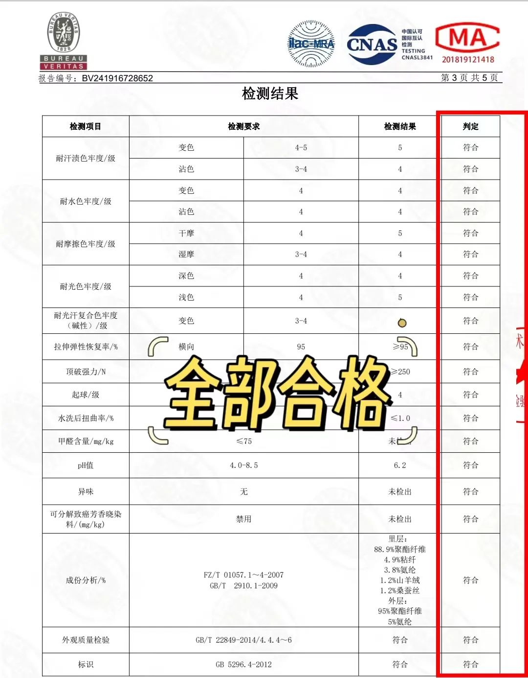 检测报告指数全部合格!敏感肌的小伙伴也可以放心穿。