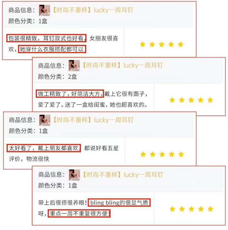 之前Lucky一周耳钉评论里也有好多类似“戴了不过敏才过来评论的”、“不会过敏耶”的评价。