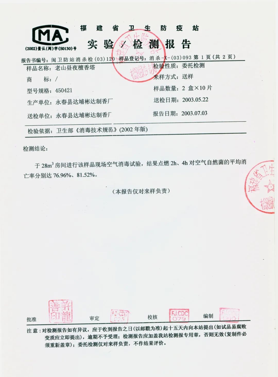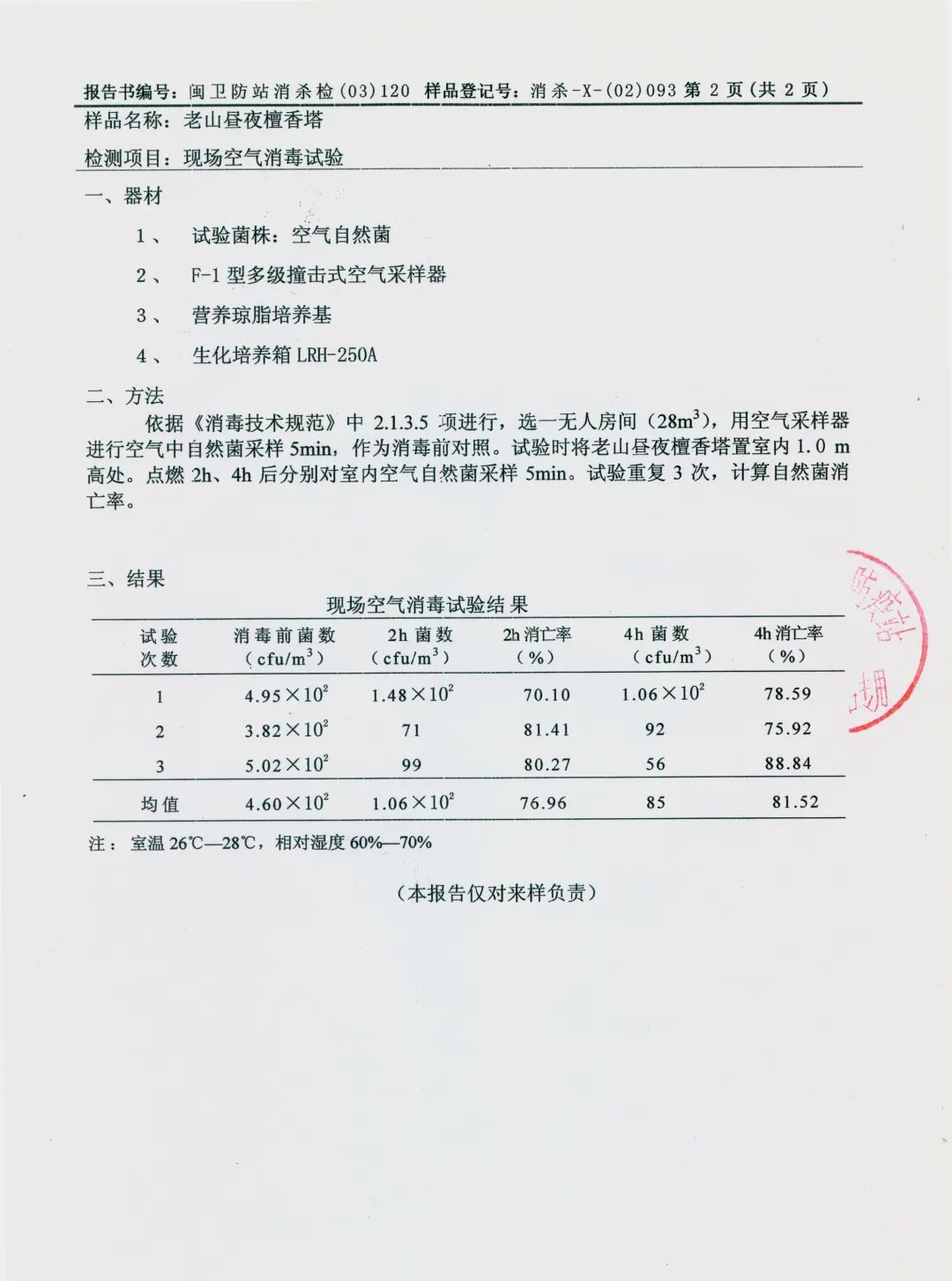 连续熏燃对空气自然菌的消亡率达到88.84%