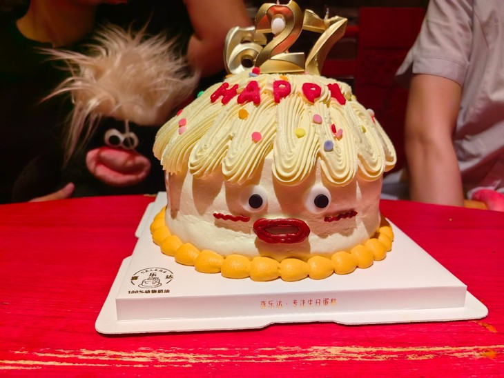太棒啦,特意叫老板把嘴巴搞成这样,丑萌丑萌的,太可爱了,蛋糕也好好吃