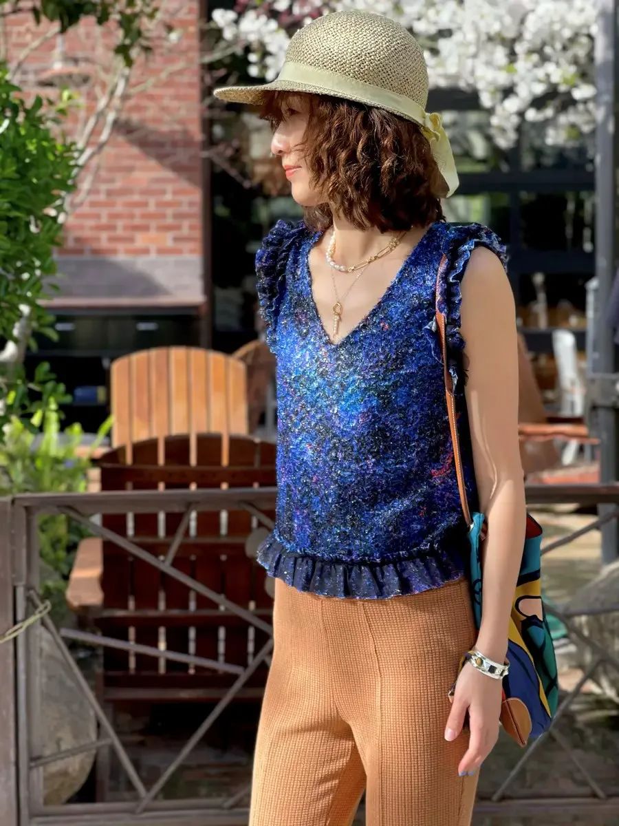 简单的荷叶针织背心,是一个很好的浅尝BVgreen的单品。