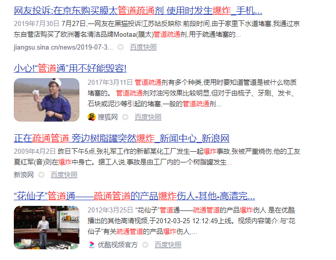 往往还没到达堵塞处,就粘在排水口,大量清水灌冲后,化学物质被稀释的所剩无几,见效不慢才怪!