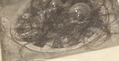 浴室下水道里堆积的头发,在疏通剂的浸泡下,没几分钟就被漂白断裂了,最后融成了糊!