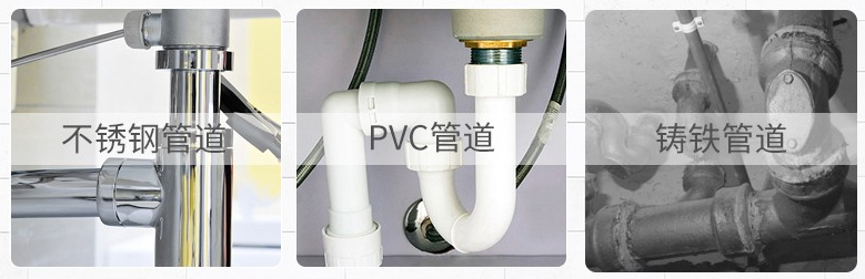 每渍每克疏通剂适用于PVC、不锈钢、铸铁等管道,符合不同家庭的使用需求。