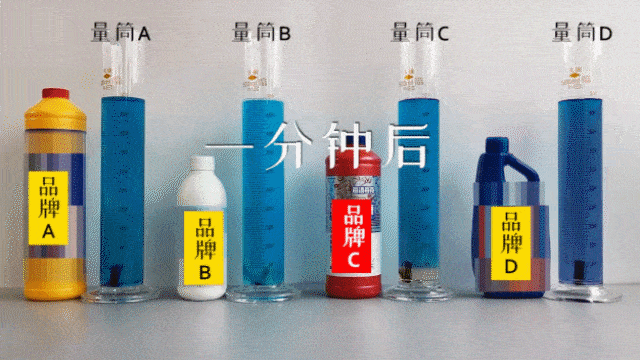 而其他固态、液态的疏通剂,都出现了溶于水的情况,有效浓度降低80%。