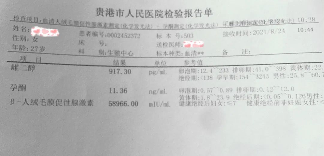 2019年开始备孕,19年3月份发现怀孕,孕酮血值都很低,隔天复查,结果也不好。