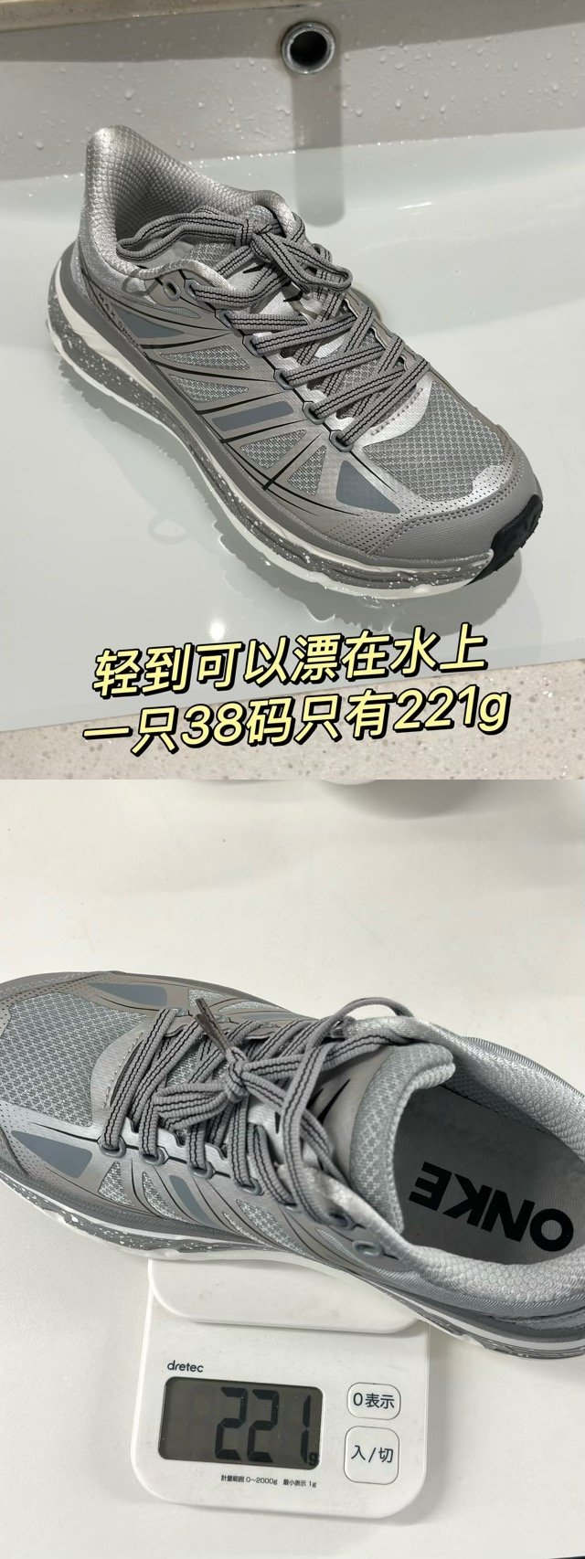 就咱普通运动需求量不大的人穿,绝对是够了,上下楼梯提着 10 斤货,膝盖也能受得住。可以漂在水上,比普通运动鞋快轻了近两倍!!!难怪比我同事他们走路要快些哈哈哈~