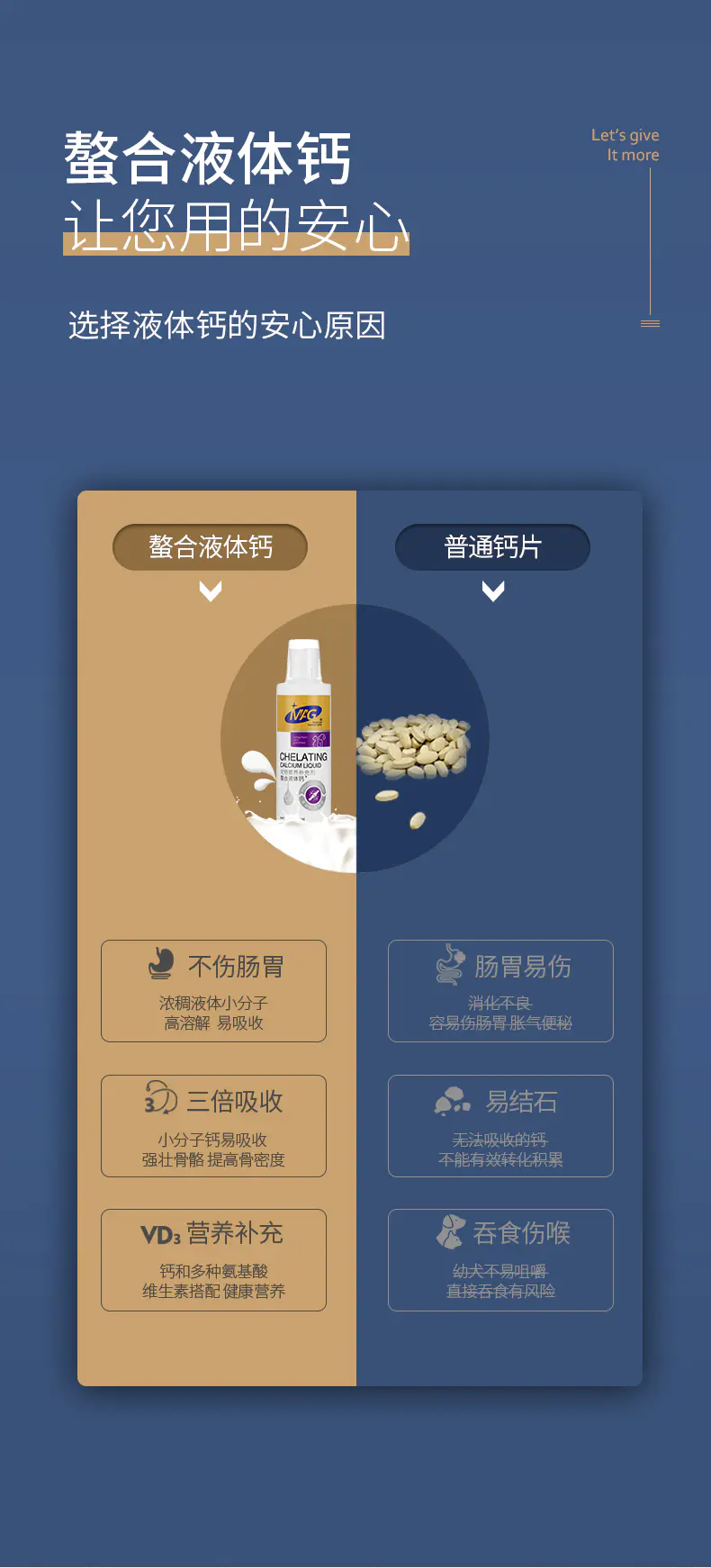 液体螯合钙,小分子钙+维生素D3的搭配,加倍吸收。多种氨基酸与维生素搭配,促进吸收,补充流失钙质。