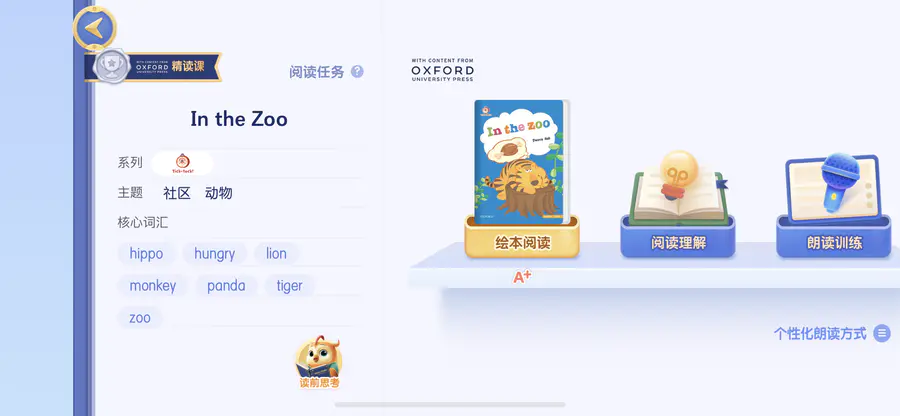 宝贝收获:可以独立认读:字母A ,tiger monkey panda,以及跟读一本绘本