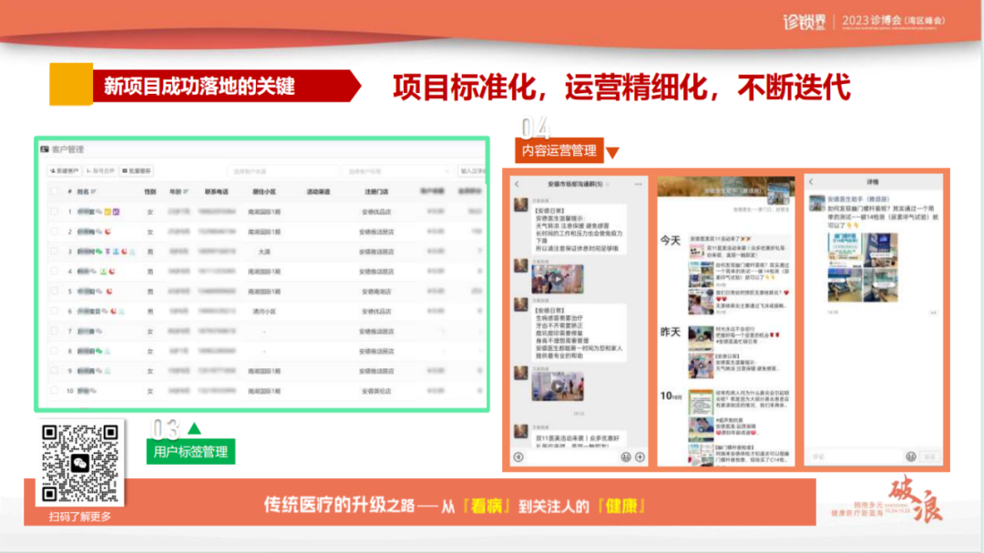 其次,用户运营要精细化。添加用户微信时要打上标签,因为没有标签便无法了解用户。了解用户的情况才能了解他们的家人,进而计算转化率等指标。安德会计算每个项目落地后产生效益所需的时间,因为需要触达每个用户。