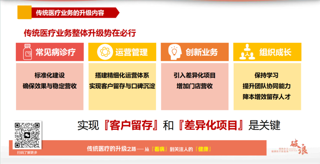 传统医疗的升级,核心在于提高用户留存率和升级服务,要关注品质和提高效率,从看病到关注人的健康。