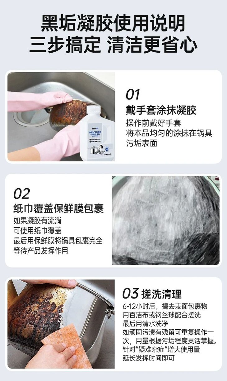 一瓶轻松去除顽固黑,有效还还原锅具光彩!