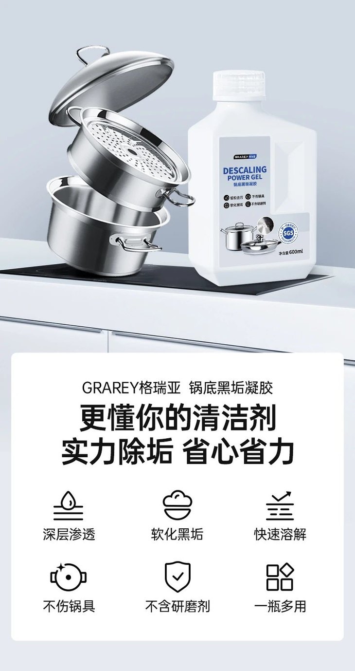专洗黑锅的清洁神器!【GRAREY锅底黑垢凝胶】水一冲,锅底黑垢全都去无踪!