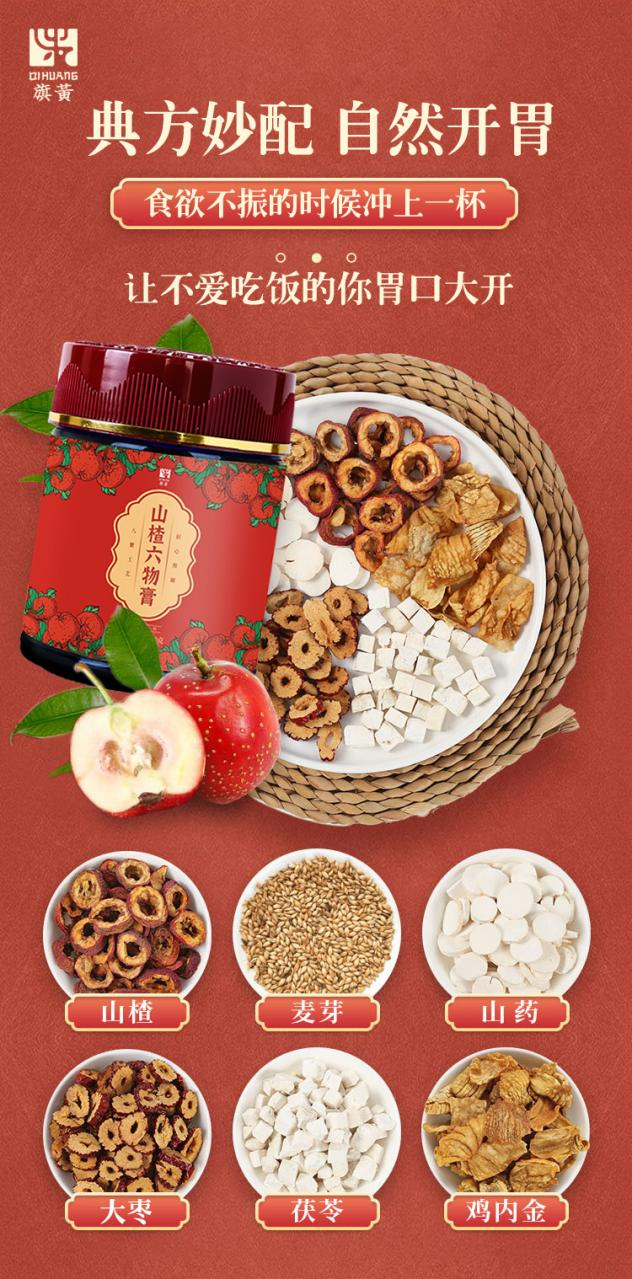 山楂六物膏精选道地中药材,平衡搭配以健脾消食的山楂为君药,麦芽行气消食,健脾开胃,山药滋肝养肾、调和脾胃,鸡内金消食健胃,增加胃液分泌量。蜜炼成膏,色若乌金,口感酸甜,醇厚细腻。整个组方相互配伍可以消食导滞、健脾和胃、增加机体抵抗力……健康无添加,是全家人养胃健脾的养生佳品!