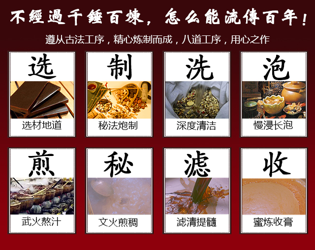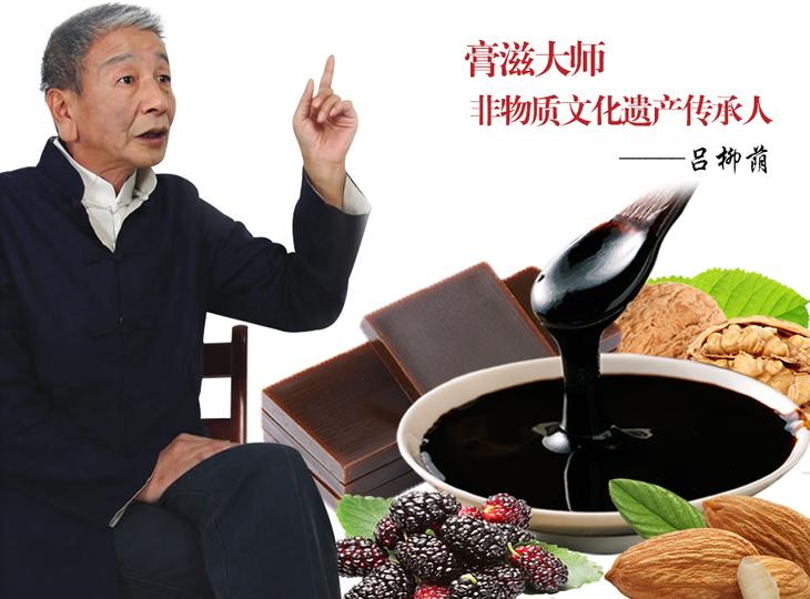 作为“非物质文化遗产传承人”的吕柳荫老师,50多年来坚持传统古法工艺,以精益求精的工匠精神熬膏。12小时浸渍,3道提取,4次浓缩,48小时化胶,武火3次熬,文火收成膏,经过选、制、洗、泡、煎、秘、滤、收等8道繁琐工序,大约需要7天左右时间,每个环节容不得半点马虎,才能熬出一拉成丝、滴水成珠的上好膏滋。