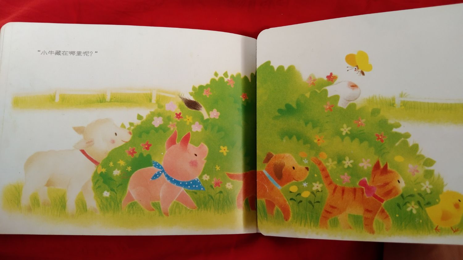 翻到有小牛的那一页没有说小牛,却在模仿小牛打喷嚏,“啊~嚏!”