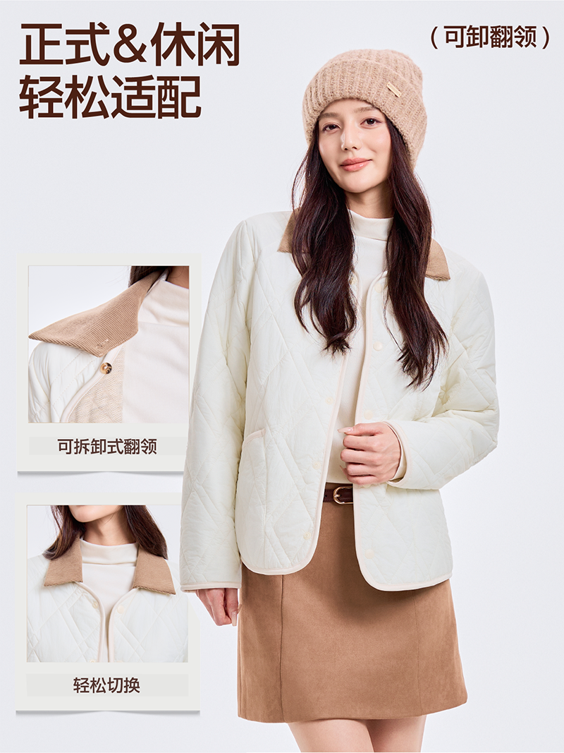 我们的设计师在这个基础上再一步升级,版型独创可拆卸式翻领设计,一键解锁多种穿搭。
