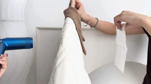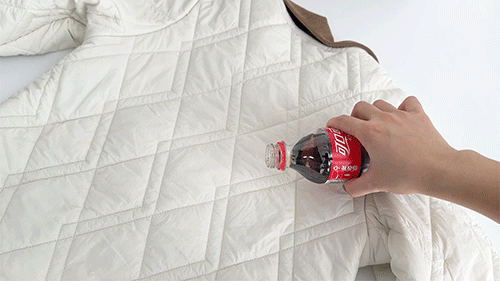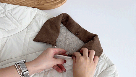 这样按压衣服,衣服还会慢慢地膨起来,穿在身上的时候仿佛跌入了一个温暖又宽厚的怀抱~